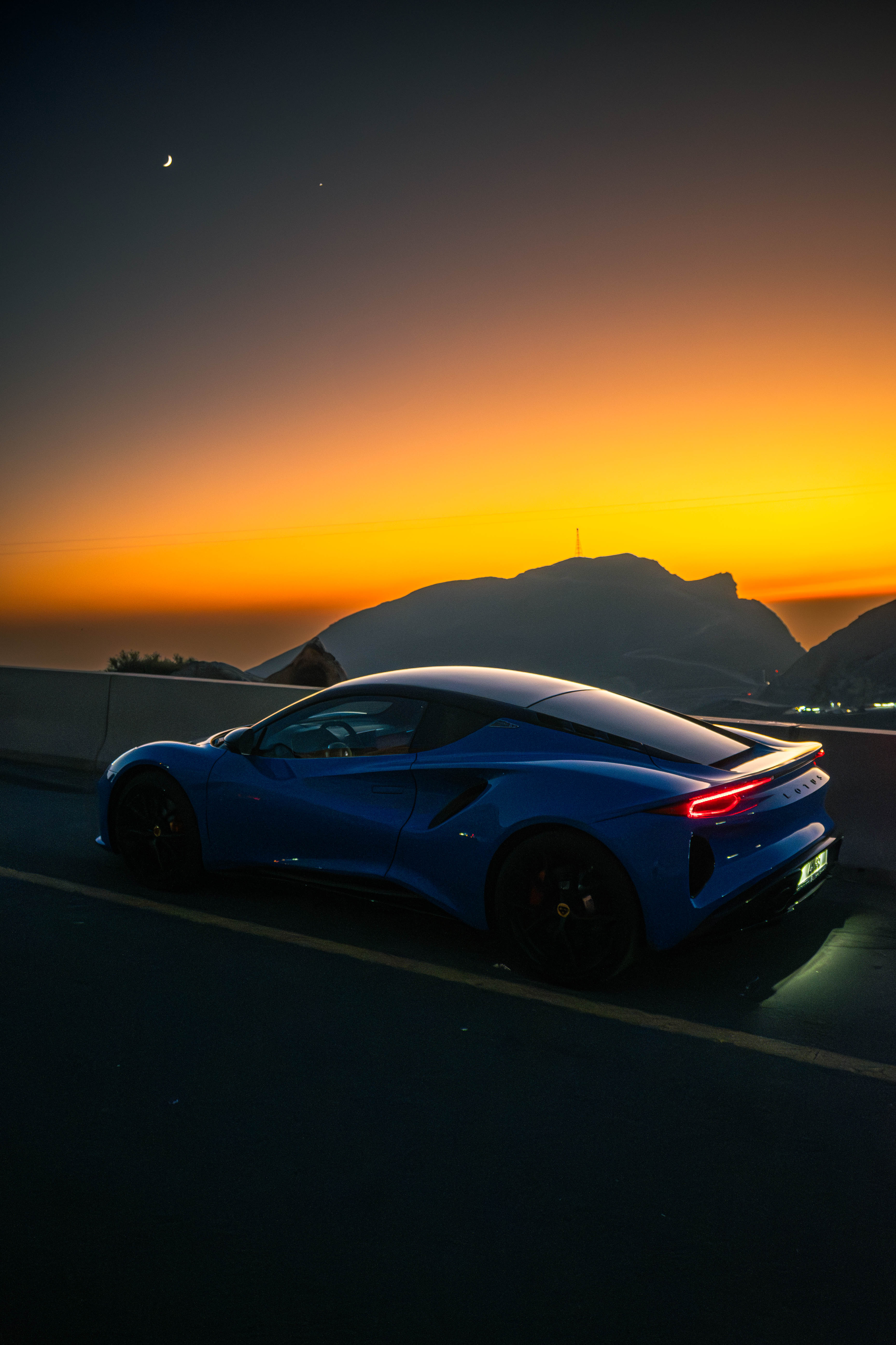 This is the one that made us fall in love with cars again. We shot it on Jabal Jais with that deep blue paint glistening against the mountains during sunset. But we wanted more we planned every detail down to the timing of the crescent moon. And we got it. That final shot of the Lotus under the moonlight was unreal. A perfect blend of nature and machine.